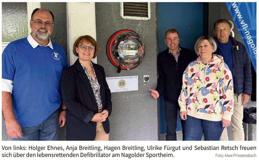 Mit der Installation eines Defis am Nagolder Sportheim dank des Lions Clubs ist man dem "herzsicheren Landkreis" wieder einen Schritt nähergekommen.